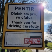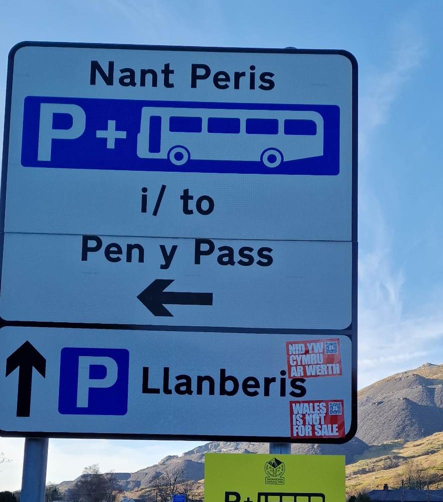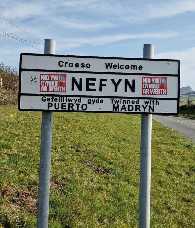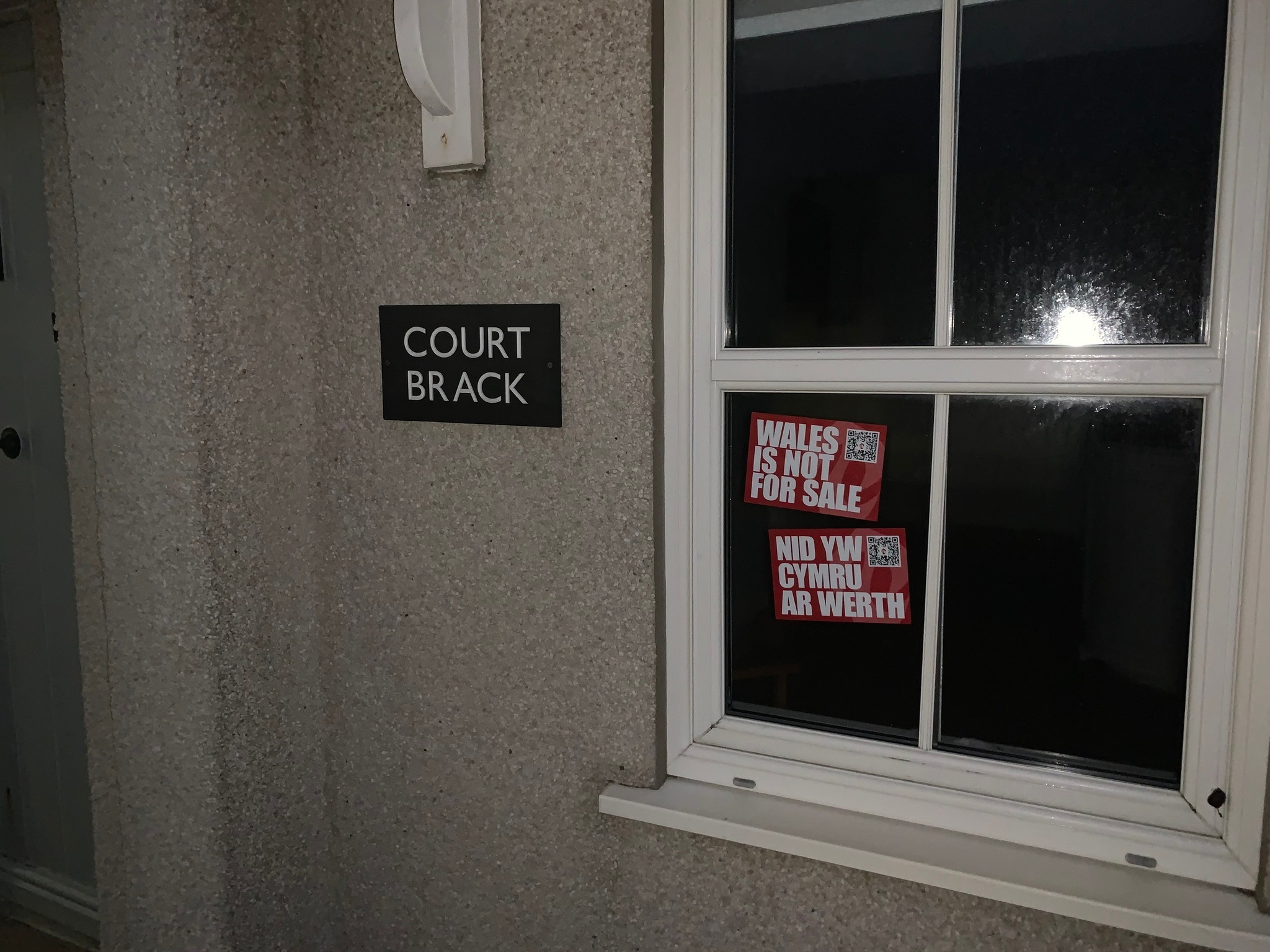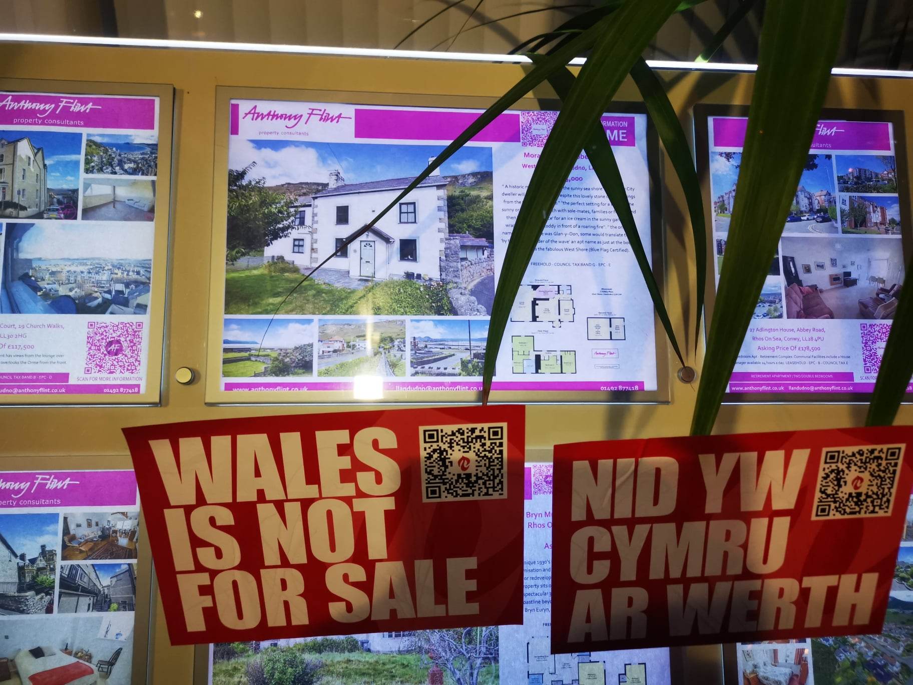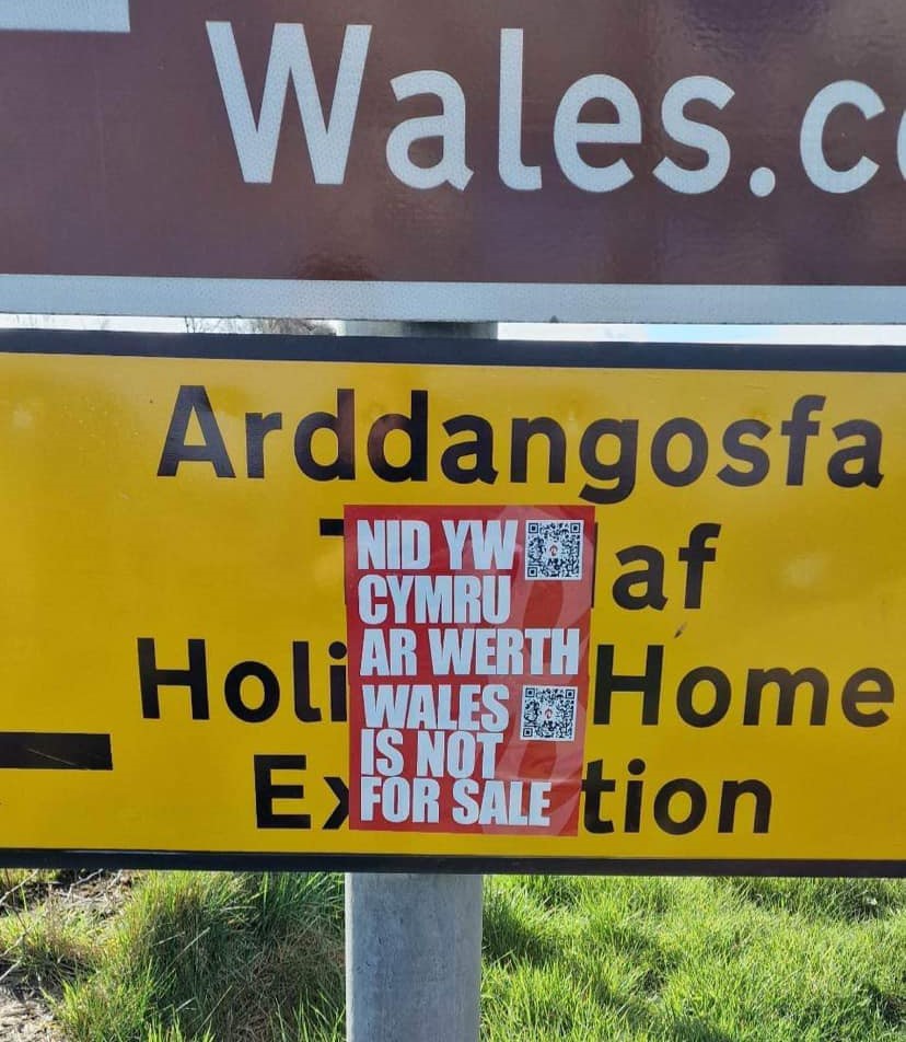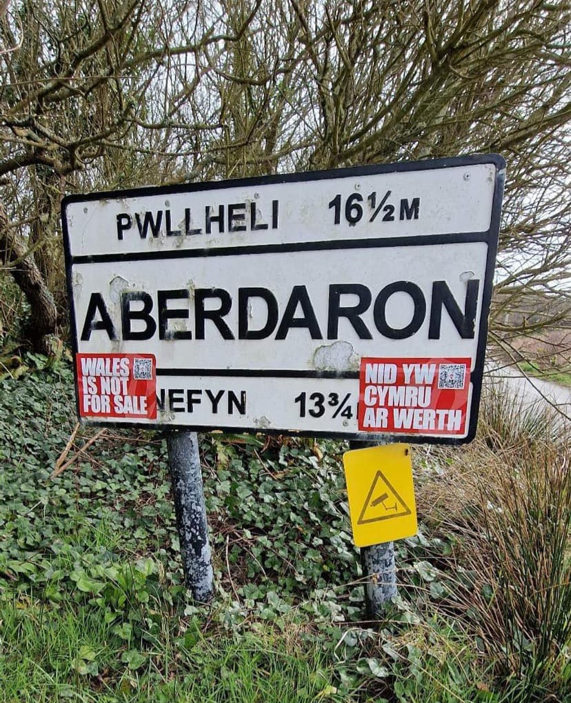 Mae sticeri Nid yw Cymru ar Werth ar gael am ddim yma (bydd angen talu cost postio)