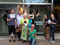 Daeth busnes Marks and Spencer Caerfyrddin i stop am hanner awr prynhawn yma (dydd Sadwrn 3ydd o Awst) wedi i aelodau o Gymdeithas yr Iaith wrthod talu am eu siopa.