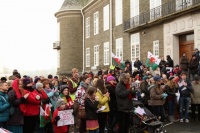 Cododd y dorf arwyddion yn dweud 'dwi eisiau byw yn Gymraeg'’ a rhannwyd copïau o’i ‘maniffesto byw’ sydd yn cynnwys dros ugain o bolisïau gyda’r nod o gynyddu’r defnydd a’r nifer o siaradwyr Cymraeg.