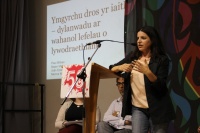 Fe wnaeth siaradwyr o Golombia, Gwlad y Basg, Twrci a Chatalonia yn ogystal â Chymru drin a thrafod ymgyrchoedd iaith mewn cynhadledd arbennig a gynhelir ar yr un penwythnos â chyfarfod cyffredinol y Gymdeithas. Ymysg y siaradwyr yr oedd Dr Sian Edwards o Brifysgol Abertawe, yr awdur ac ymgyrchydd Ned Thomas, Bejan Matur awdur Gwrdaidd o Dwrci, Paul Bilbao Sarria o Wlad y Basg a Maria Areny o Gatalonia.