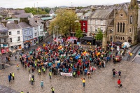 Er gwaetha'r tywydd fe wnaeth torf o dros 1500 o bobl yn rali Nid yw Cymru ar Werth heddiw ymrwymo i ddyfodol ein cymunedau lleol a danfon neges glir at y Gweinidog Newid Hinsawdd, Julie James, bod angen Deddf Eiddo sydd yn rheoleiddio'r farchnad.