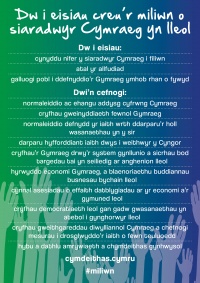 Cyn yr etholiadau lleol ym mis Mai, mae ymgyrchwyr iaith wedi herio'r pleidiau i ymrwymo i gymryd camau'n lleol i gyrraedd y nod o greu miliwn o siaradwyr Cymraeg.