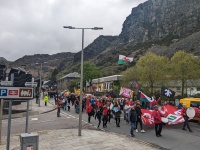 Mynychoedd gannoedd rali a gorymdaith Nid yw Cymru ar Werth ym Mlaenau Ffestiniog heddiw (4 Mai) i alw ar Lywodraeth Cymru i gyflwyno Deddf Eiddo fyddai’n mynd at wraidd yr argyfwng tai, a sicrhau bod tai yn