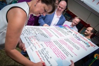 Daeth dros 400 o bobl i barti Cymdeithas yr iaith ar faes yr Eisteddfod heddiw i ddathlu fod y Cyngor wedi cyhoeddi amserlen gweithredu ei strategaeth iaith newydd.
