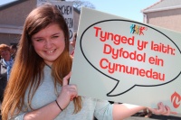 Roedd eu posteri yn galw am "ESTYN ALLAN at ein cymunedau" a phosteri'n mynnu dyfodol i nifer o ysgolion pentrefol Cymraeg y sir sydd tan fygythiad; a'r protestwyr yn targedu'r Cyngor Sir ac hefyd ESTYN sydd i raddau helaeth yn gyrru'r broses o ymosod ar ein hysgolion.