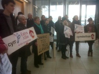 Yn gynharach yn y dydd, daeth hanner cant o bobl ynghyd mewn rali er mwyn galw