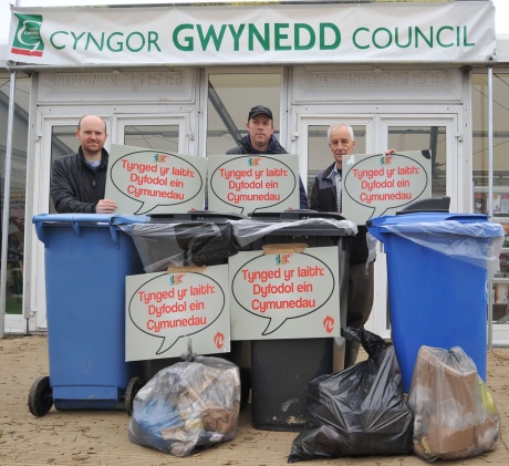 Yn gynharach yn ystod y bore, yr oedd aelodau Cymdeithas yr Iaith wedi gosod rhes o finiau sbwriel o flaen uned Cyngor Gwynwedd ar faes yr Eisteddfod, Esboniodd Ffred Ffransis: "Gan fod Cyngor Gwynedd a chynghorau eraill fel Ceredigion a Chaerfyrddin wedi bod mor barod i wneud gwaith budr eraill drostynt, yr ydym wedi symboleiddio hyn trwy osod biniau sbwriel o flaen eu hunwed gan wahodd y Cyngor i wneud gwaith Eisteddfod yr Urdd drostynt heddiw."