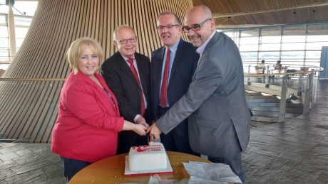 At the cake cutting, politicians from all four parties in the Assembly - Keith Davies, Suzy Davies, Simon Thomas and Aled Roberts - have released a joint statement which calls on the Government to implement Professor Sioned Davies's report which was published in September 2013. The cross-party statement says: "On the occasion of the second anniversary of the publication of Professor Sioned Davies report "Second Language Welsh", we ask the Welsh Government to give positive attention to the recommendations when making an announcement about the future of the Welsh curriculum. We believe that every pupil should develop the skill to able to work and communicate in Welsh and English."