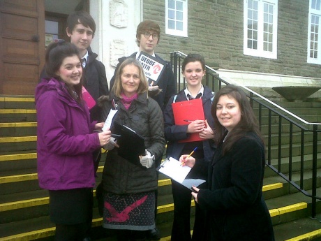 At lunchtime today, Cymdeithas yr Iaith have sent a team of inspectors into Carmarthenshire Coungil HQ in Carmarthen to find out whether or not the Council itself is setting an example in promoting the Welsh Language. The inspectors are asking staff during their lunchtime break to what extent they are carrying out their work in Welsh.