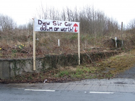 Heddiw (dydd Sadwrn 13eg o Ebrill) mae aelodau o Gymdeithas yr Iaith wedi codi baner yn datgan gwrthwynebiad i ddatblygiad tai ym Mhenybanc ger Rhydaman. Codwyd y faner, sydd yn datgan “Nid yw Sir Gâr ar Werth”, ar y safle mae Cyngor Sir Gaerfyrddin wedi caniatáu codi 289 o dai arno.