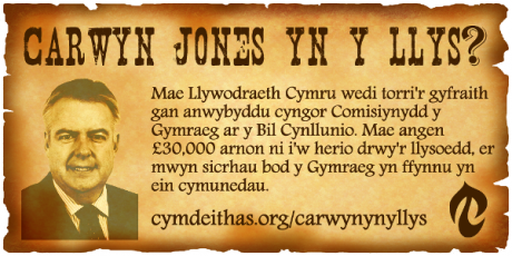 Gwnaethpwyd addewid gan y Prif Weinidog, Carwyn Jones, mewn dogfen polisi a gyhoeddwyd fis Mehefin, i ystyried 'pob cam ymarferol ar gyfer atgyfnerthu’r Gymraeg o fewn y system gynllunio'. Ond, doedd y Bil Cynllunio, a gyhoeddwyd fis Hydref y llynedd, ddim yn adlewyrchu cyngor y Comisiynydd: doedd dim sôn am y cyngor yn nogfennau'r Bil.