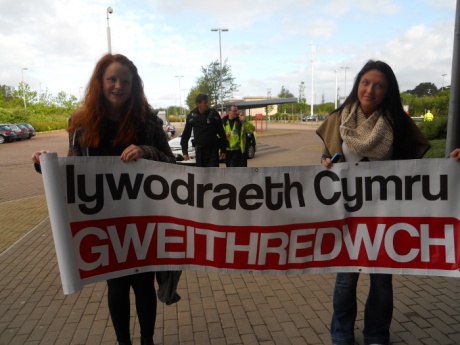 Paentiodd yr ymgyrchwyr slogannau megis ple dros “Addysg Gymraeg i Bawb” ar wal adeilad Llywodraeth Cymru yn y dref am tua chwarter i wyth o'r gloch heddiw (Dydd Llun, Mai 12). Mae'r brotest yn rhan o ymgyrch ehangach y Gymdeithas sy'n rhoi pwysau ar Llywodraeth Lafur Cymru i weithredu ar frys dros y Gymraeg, yn dilyn cwymp yn nifer siaradwyr y Gymraeg. Mae aelodau Cymdeithas yr Iaith yn galw ar y Llywodraeth i ymgorffori 6 phwynt sylfaenol yn ei pholisïau, megis addysg Gymraeg i bawb, tegwch ariannol i'r iaith, a threfn gynllunio newydd er budd ein cymunedau.
